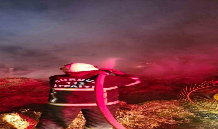 Burdur’da gece saatlerinde ahırda çıkan yangında 500 adet saman balyası yanarken 6 buzağı ise telef oldu.