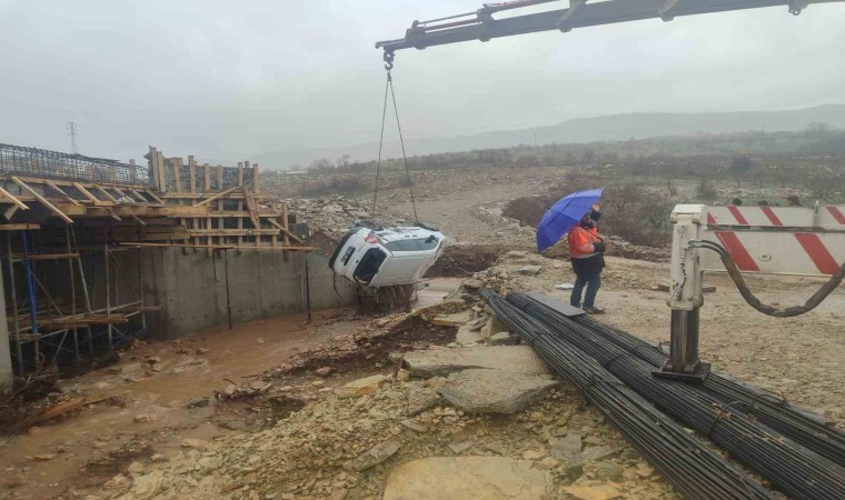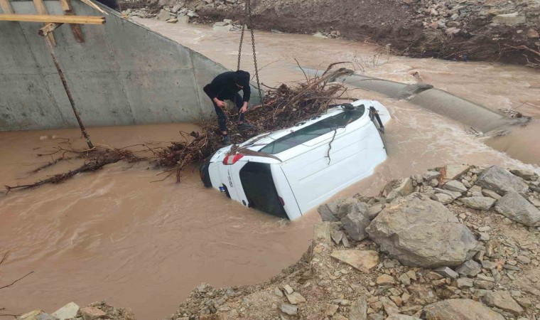 Adıyaman’ın Gölbaşı ilçesinde önceki gece etkili olan yağmur nedeniyle sel sularında sürüklenen araç gündüz vinç yardımı ile sürüklendiği yerden çıkarıldı.