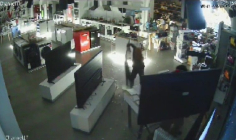 Milyonluk hırsızlık anları ise güvenlik kameralarına saniye saniye yansıdı. Görüntülerde, kamyonetle mağazaya yanaşan şüpheli şahısların, camı çerçeveyi indirdikten sonra içeri girerek ellerine aldıkları her şeyi çalma anları yer aldı.