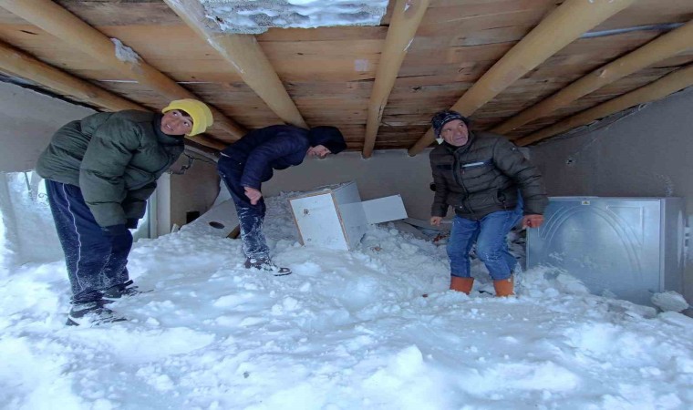 Van’ın Özalp ilçesinde çığın duvarlarını yıktığı evde yaşayan anne ve 2 çocuğu canını zor kurtardı.