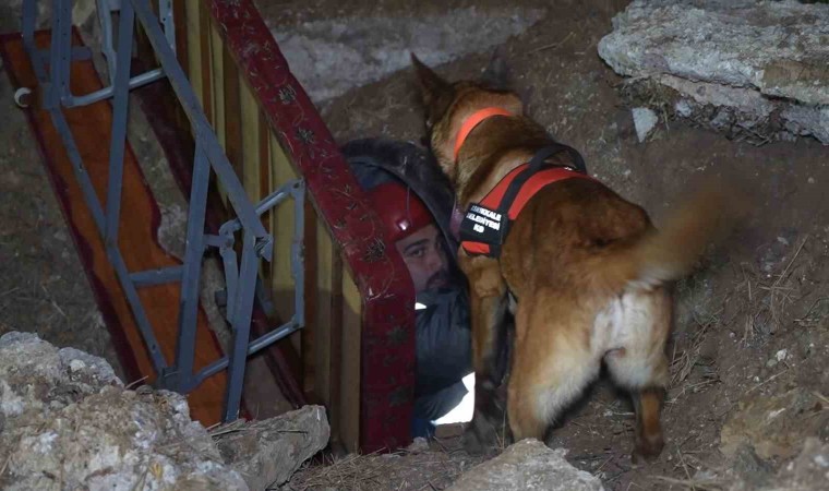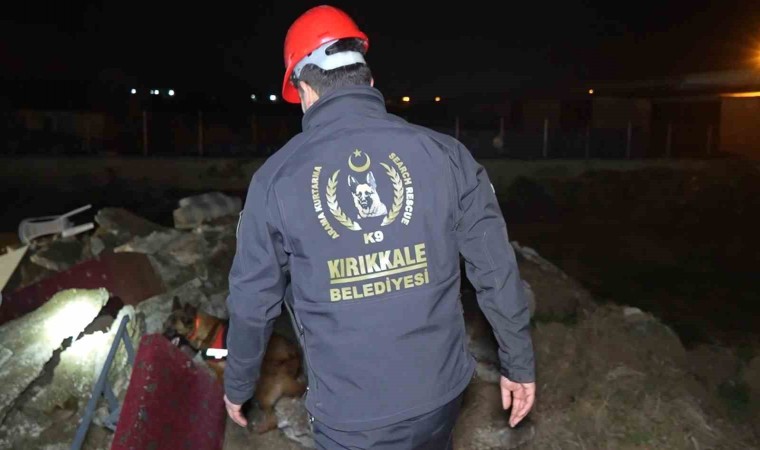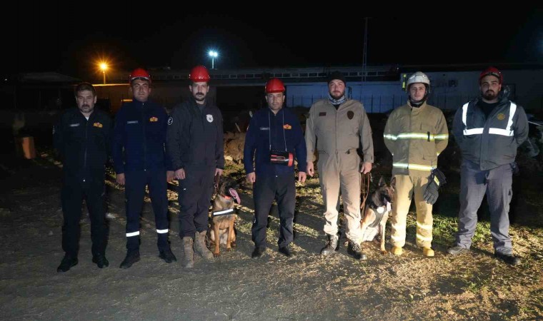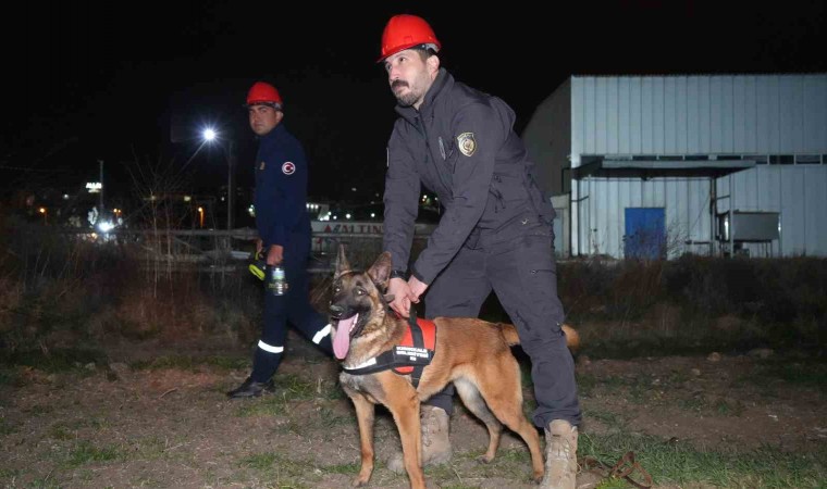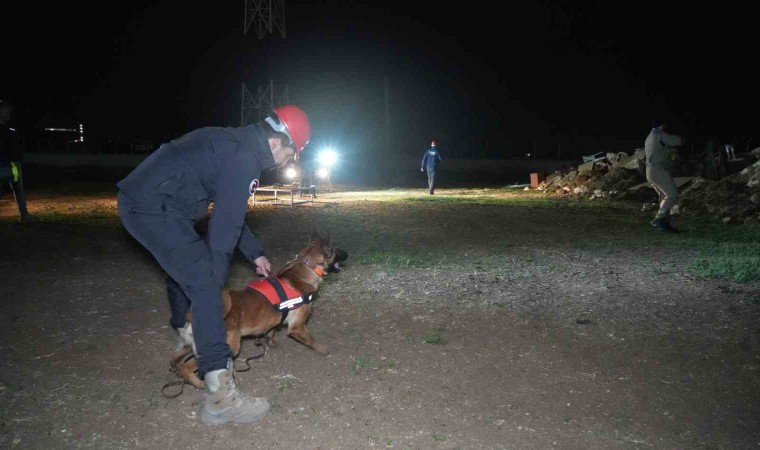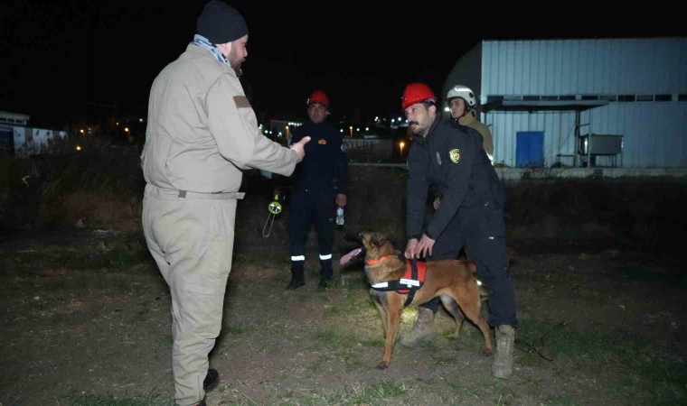 Kırıkkale’de muhtemel doğal afetlere karşı hazırlıklarını sürdüren arama kurtarma ekipleri, hassas burun köpeklerle gecenin ayazında tatbikat yaptı.