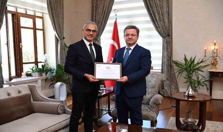 Heyet, Manisa Valiliği’nin Gediz Orman Projesine verdiği destek nedeniyle Vali Ünlü’ye ‘Doğa dostu’ sertifikası takdim etti.
