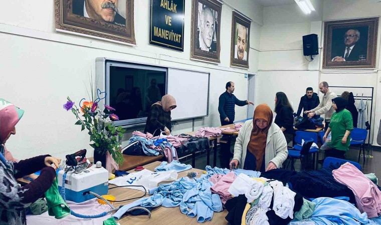 Zalimin Hasmı Mazlumun Hamisiyiz, zor zamanların en önde gelen üretim kurumlarından biri olduklarını dile getiren Halk Eğitimi Merkezi Müdürü Ali Arısoy, “Ekim ayından bu yana devam eden Filistin-İsrail savaşında, birçok insani haktan mahrum bırakılan Filistinlilerin yaşam mücadelelerine katkı sağlamak istedik. 1 ay gibi kısa sürede elimizden geldiğince günlük kullanım için üretebildiklerimizi ürettik. Halk Eğitim Merkezi olarak onların ihtiyaçlarını karşılamak adına bütün dikiş kurslarımızda kursiyer ve hocalarımızın destekleri ile kıyafet dikip Filistin’e gönderdik” dedi.