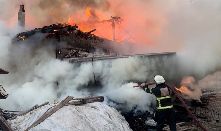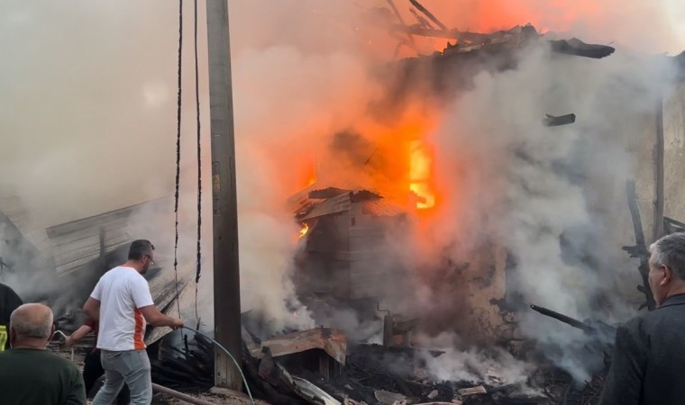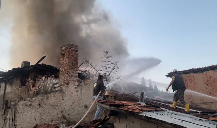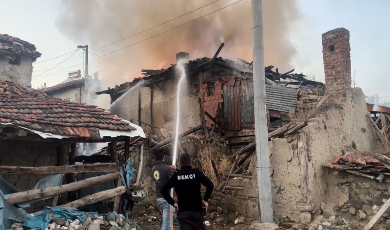 Kütahya’nın Gediz ilçesinde çıkan yangında ahşap bina yanarak küle döndü.