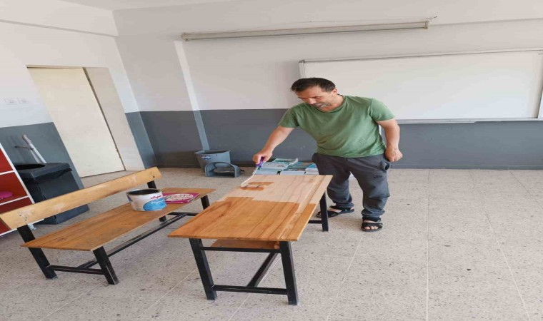 Yaz tatili döneminde, Okul Müdürü Halil Ceryan, Müdür Yardımcısı Halil Akgün ve yardımcı hizmetler personeli İsa Arıkan, okulun deforme olmuş sıralarını yenileyerek eğitim yılına hazırlık çalışmalarını sürdürüyorlar. Yaz tatilini okulun tadilat görmesi gereken bölümleri ve okul sıralarının zımpara, vernik ve tamiratını yaparak verimli bir şekilde değerlendiren gönüllüler, bu sayede, okulun masraflarını da önemli ölçüde azaltmış oldular.