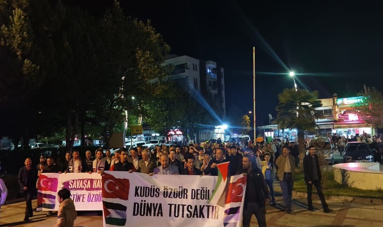 Yürüyüş sonunda belediye binası önünde katılımcılara teşekkür eden Belediye Başkanı Muharrem Akçadurak, “Bize burada belki bu tür şeyler basit gibi geliyor olabilir ama, televizyonlara bakmakta zorlanıyoruz. Çocukların pğarça parça çıkması hepimizi yürekten üzüyor. Tamamen bir soykırım. İslamiyet’e yapılmış bir saldırı olarak görüyorum. Başka hiçbir şey değildir. Filistin’de ölen çocuklarımıza, yaşlılarımıza, kardeşlerimize Allah’tan rahmet diliyorum. Yaralılarımıza şifalar diliyorum. İnşallah dualarımız onların yanında olur” ifadelerini kullandı.
