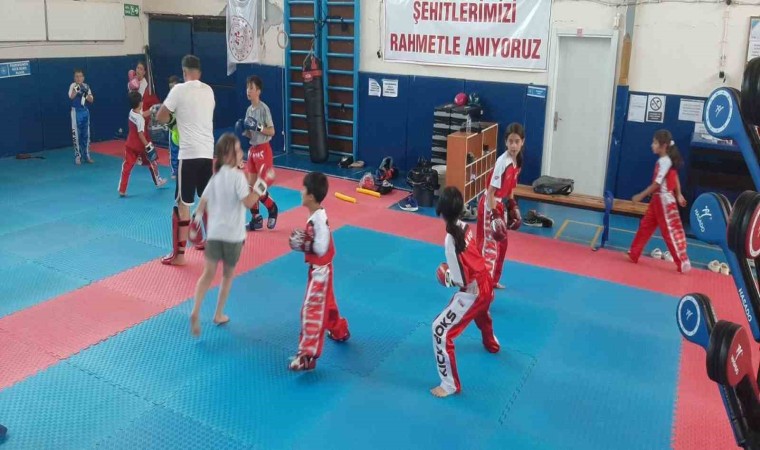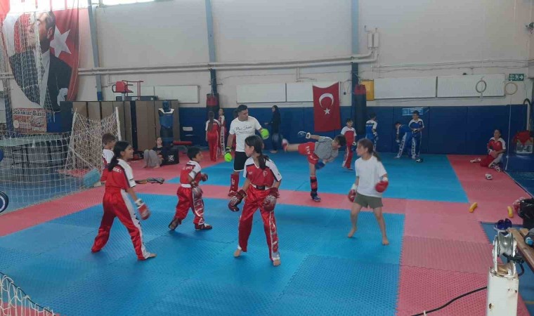 Kütahya’nın Gediz ilçesinden Türkiye Şampiyonasına katılacak olan 4 kick boks sporcusu antrenörleri eşliğinde çalışmalarını sürdürüyor.