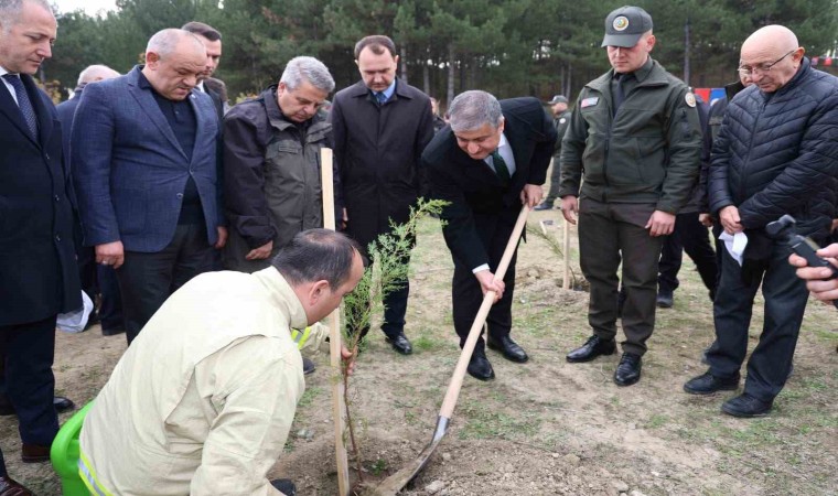 Karabük’ün orman zenginliği açısından yüzde 74 orman varlığı ile Türkiye’de ilk sırada yer aldığını vurgulayan Vali Yavuz, “Karabük’ün yüzde 74’ü ormanlarla kaplı. Bu da bize ormanlarımızı korumamız, yaşatmamız ve yeni ağaçlandırma çalışmaları yaparak orman varlığımızı artırmamız gerektiğini gösteriyor. Yenice ilçemizdeki blok ormanlarımız, Avrupa’da korunması gereken 100 sıcak noktadan biri olarak öne plana çıkıyor. Bu yüzden fidanları ve tohumları toprakla buluştururken, mevcut orman varlığımızı da bilinçli bir şekilde korumamız gerekiyor. Yıl boyunca çıkan küçük ve büyük çaplı 42 orman yangınlarının çoğu kısa sürede söndürül. Kahraman orman teşkilatı ve kolluk kuvvetlerine, ayrıca gönüllülerin özverili çalışmaları için de ayrıca teşekkür ederim. Nasıl kara ve mavi vatanımızı koruyorsak, akciğerlerimiz olan Yeşil vatanımız ormanlarımızı da aynı şekilde korumalıyız. Karabük olarak Türkiye’de birinci sırada yer almanın bilinciyle hareket etmeli ve her fırsatta ağaçlandırma faaliyetleriyle bu yeşil vatanımıza katkı sağlamalıyız.” diye konuştu.