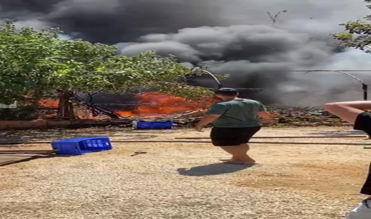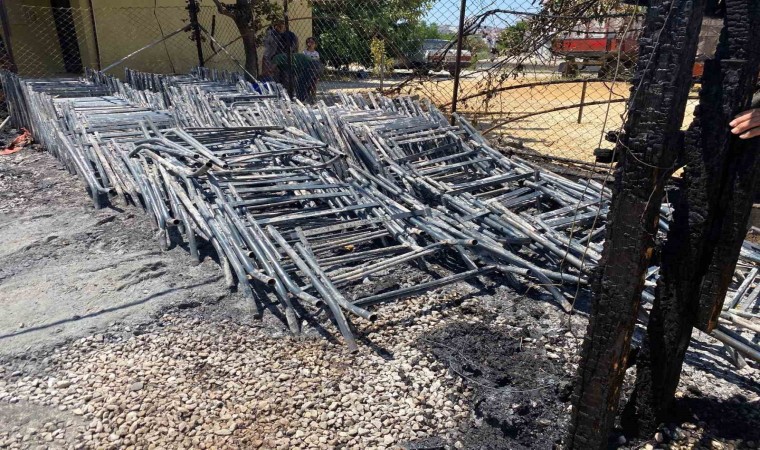Antalya’nın Serik ilçesinde Serik ilçesine bağlı Kökez Mahallesinde meydana gelen yangında kiralık plastik masa ve sandalyeler alev alev yandı.