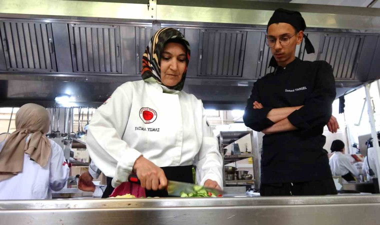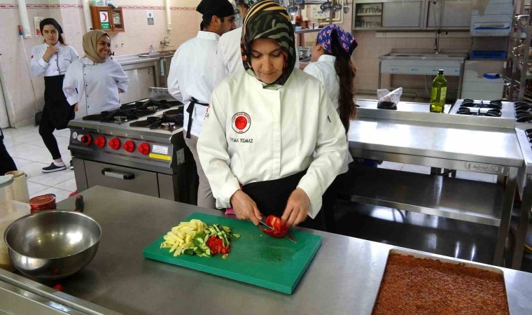 Ev hanımlığının verdiği tecrübenin okulda mutfak alanında çok işine yaradığını da anlatan Yılmaz, “30 yıldır mutfakta olduğum için uygulamalı mutfak eğitimi dersimiz çok eğlenceli geçiyor. Teorikte de mutfak tekniklerine yönelik yeni bilgiler öğreniyorum. Dünya ve Türk mutfağından birçok yemekler öğreniyoruz. Osmanlı yemeklerine kadar iniyoruz, neler yapıldığını görüyoruz. Bu da benim için çok güzel bir deneyim oluyor. Arkadaşlar da beni anneleri olarak görüyor, mutfakta birlikte çalışıyoruz, ortaya da güzel işler çıkarıyoruz. Benim kızımın biri de başka şehirde aşçılık okuyor, onunla birlikte bir işletme açmayı düşünüyorum. İstihdama faydalı olmak istiyoruz, projelerimiz var, bu bölümü bitirmeme daha bir yıl var sonrasında böyle bir iş yeri düşünüyoruz” şeklinde konuştu.