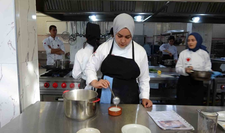 Gastronomi ve Mutfak Sanatları Atölyesinde hem teorik hem de uygulamalı eğitimlerini sürdüren 102 öğrenci, başta zengin Türk mutfağı olmak üzere dünya mutfağının lezzetlerini öğreniyor. Öğrenciler, mutfak kültürü, pasta ve tatlı, gıda hijyeni, beslenme ve servis yöntemlerini de öğrenerek geleceğin Türkiye’sinde ve uluslararası düzeyde söz sahibi olacak şef ve aşçılar arasında yer almayı hedefliyor.