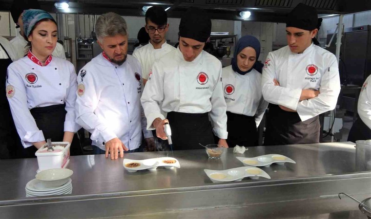 Yozgat Bozok Üniversitesi Meslek Yüksekokulu Otel Lokanta ve İkram Hizmetleri Bölümü Aşçılık Programında ön lisans öğrenimlerini sürdüren öğrenciler, geleceğin şef ve aşçıları olmak için Türk ve dünya mutfağını öğreniyor.