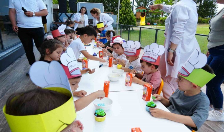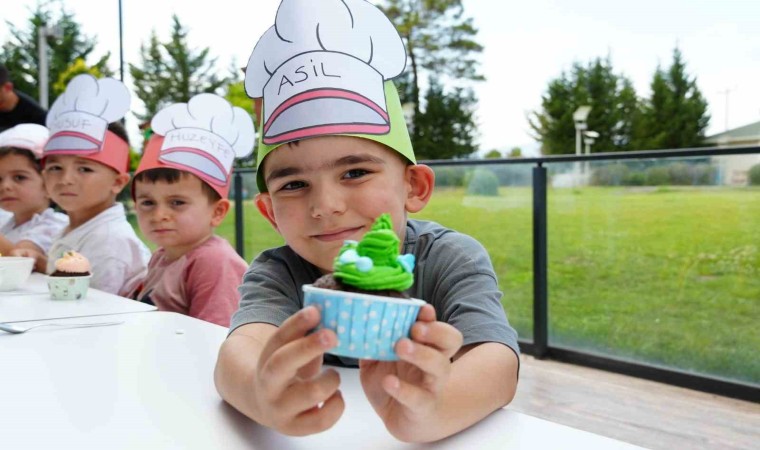 Hem eğlenceli zaman geçiren hem el becerileri gelişen, hem de sosyal olarak gelişimlerine katkı sağlayacak aktivitelere katılan minik şefler, hazırladıkları cup kekleri afiyetle yedi.