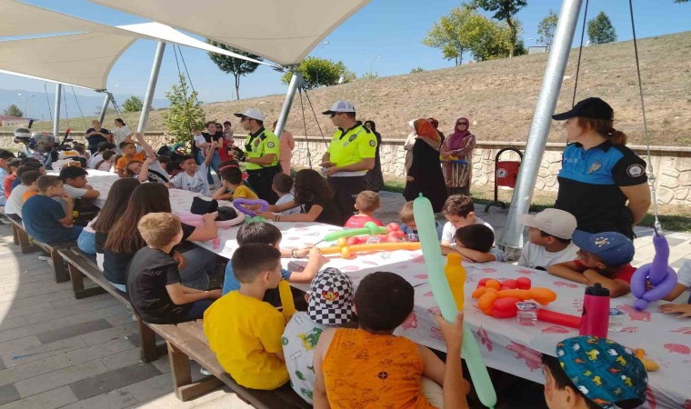DÜZCE(İHA) – Düzce’de polis ekipleri yaz Kur’an kursuna giden geleceğin trafik dedektiflerine trafik eğitimi gerçekleştirdi.