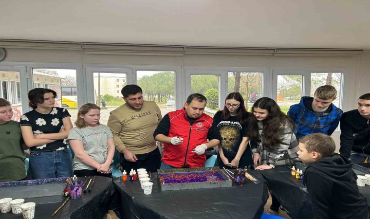 Muğla Gençlik ve Spor İl Müdürlüğüne bağlı Muğla Kötekli Gençlik Merkezi’ne bağlı Genç Ofis’te Ukrayna’dan Türkiye’ye gelen 40 çocuğa geleneksel Ebru Sanatının tanıtımı gerçekleşti.