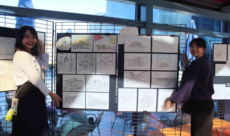 Japon mimarlık öğrencileri İstanbul, Bursa ve Edirne’de etkilendikleri geleneksel Türk mimarisi örneklerine bakarak çizdikleri eskizlerle sergi açtı.