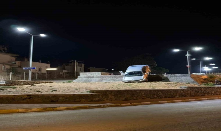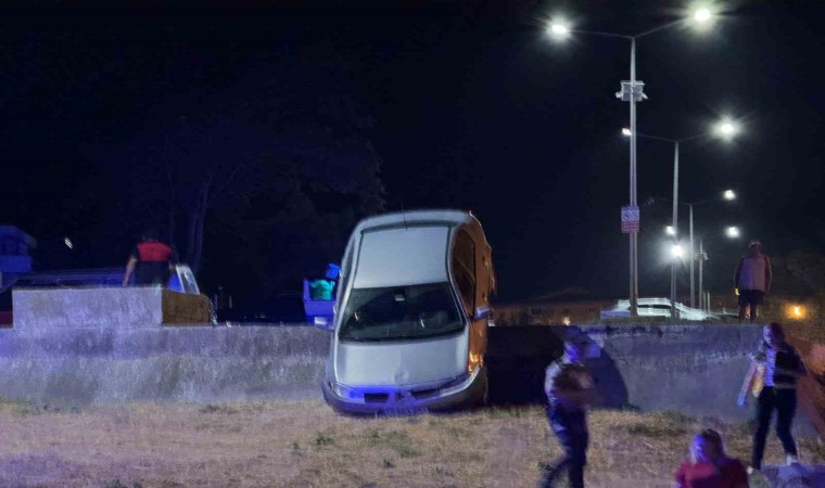 Çanakkale’nin Gelibolu ilçesinde bir otomobil otopark duvarında asılı kaldı. Sürücü G.G. 3,93 promil alkollü çıktı.