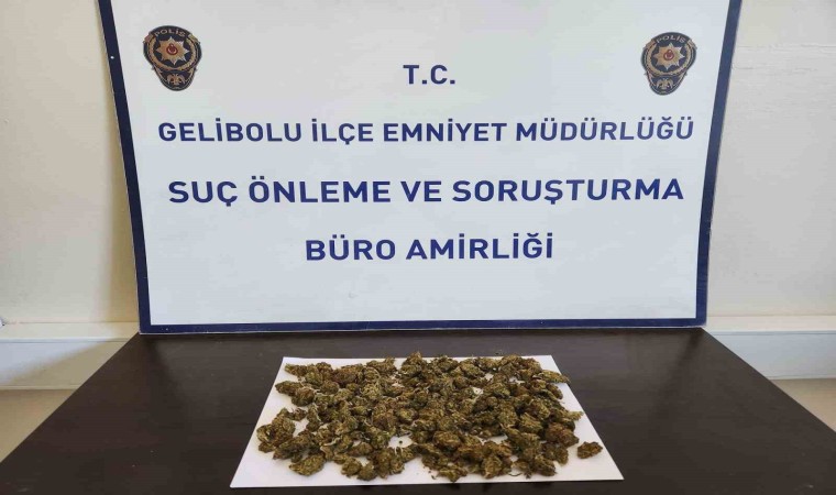Çanakkale'nin Gelibolu ilçesinde polis ekipleri, uyuşturucu madde satışıyla ilgili yaptıkları çalışmada sırt çantasında 90 gram skunk bitkisi bulunan bir kişiyi gözaltına aldı. Gelibolu İlçe Emniyet Müdürlüğü ekipleri, uyuşturucu maddeyle mücadele kapsamında saha çalışmalarını sürdürüyor. Bu çalışmalar sırasında M.T. isimli bir kadının sırt çantasında 90 gram skunk bitkisi bulundu. Ayrıca, yanında bulunan C.C. uyuşturucu madde kullanmış olduğunu itiraf ederek, bu maddeyi kendisine ait olduğunu söyledi. İki şüpheli, gözaltına alınarak Suç Önleme ve Soruşturma Büro Amirliği'ne götürüldü. Şüphelilerin emniyetteki işlemleri devam ediyor.