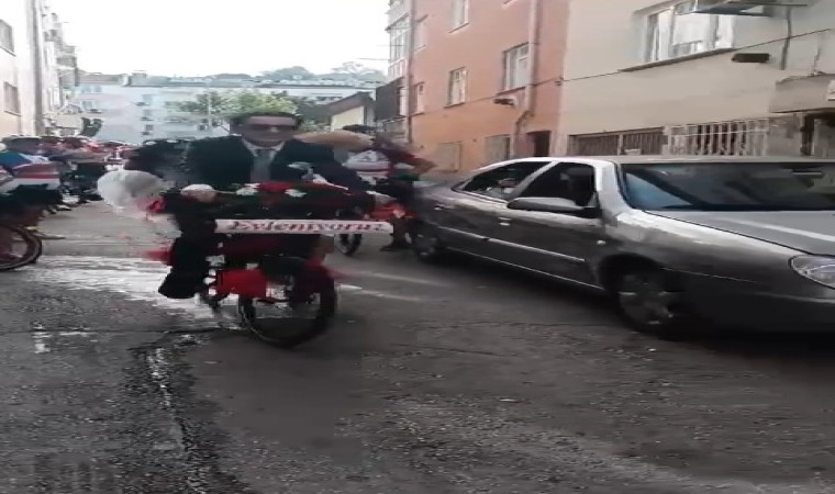 Bursa’da bir damat adayı ve arkadaşları gelin alma merasimine bisiklet konvoyu ile gitti. Görenler şaşırsa da gelin bisiklete bindi, ’ya nasip’ dedi. O anlara ait görüntüler sosyal medyada yoğun ilgi gördü.
