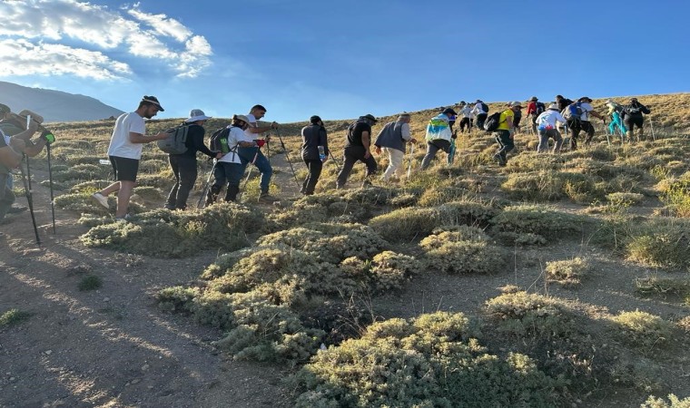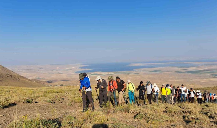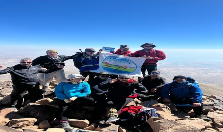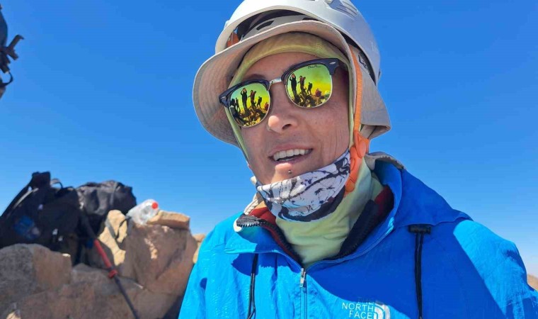 Kadına şiddete dikkat çekmek için gelinlik giyerek Ağrı Dağı’na çıkan kadın, bu sefer Van Gölü’ne dikkat çekmek için Süphan Dağı’na zirve tırmanışı yaptı.