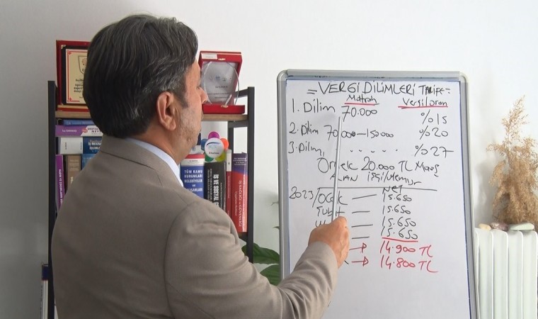 Karakaş, işçi, memur, sözleşmeli dahil bütün çalışanların ücretlerinden gelir vergisi kesildiğini fakat 1 Ocak 2022 tarihinden itibaren asgari ücret gelir vergisinin dışında tutulduğunu hatırlatarak, “Gelir vergisi tarifesine baktığımız zaman birinci dilim 70 bin liraya olanlar. Yani geliri 70 bin liraya kadar olan çalışanların maaşından yüzde 15 oranında gelir vergisi kesilmektedir. Özellikle kazancı biraz yüksek olan çalışanlar yani asgari ücretin üzerinde olanlar birkaç ay geçmesiyle birlikte kazançlarına göre ikinci dilime girmektedirler. Bu doğrultuda yüzde 20 oranında kesinti yapılmaktadır. Kişinin geliri 20 bin lira olarak varsayarsak, bu durumda ilk aylarda yapılan yüzde 15’lik kesinti üzerinden çalışanın cebine 15 bin 650 lira para girmektedir. Fakat bu işçi ilerleyen dönemde kümülatif matrahlarının birikmesiyle ocak ayından ilk maaşını aldığını varsaydığımızda mayıs ayında 15 bin 650 liranın birdenbire 14 bin 900 liraya düştüğünü, bir sonraki ay ise 14 bin 800 liraya düştüğü görmekteyiz” ifadelerine yer verdi.