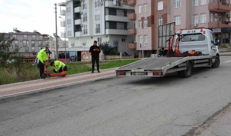 Antalya’nın Manavgat ilçesinde şehir merkezinde yol kenarlarına, yaya kaldırımlarına gelişigüzel park edilen elektrikli scooterlara yönelik denetimlerde çok sayıda scooter trafikten men edilirken, her scooter için 690 TL idari para cezası uygulandı.