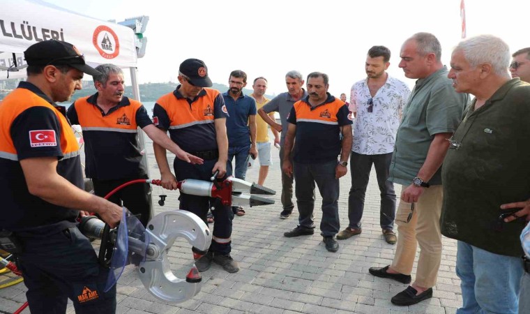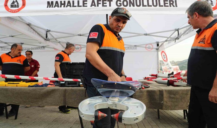 İlk kez 17 Ağustos Depremi anma programında sergilenen ekipmanlar vatandaşlar tarafından dikkatle incelenirken, Gemlik Belediye Başkanı Mehmet Uğur Sertaslan, Bursa Mahalle Afet Gönüllüleri Başkanı Yusuf Yumru’dan teçhizatların kullanımı hakkında bilgi aldı.