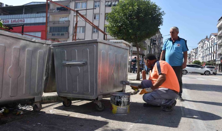 Öte yandan Gemlik Belediyesi ekipleri, ilçenin çeşitli noktalarındaki çöp konteynerlerine bakım yapıyor. İçinde ve çevresindeki kalıcı atıkların temizlendiği konteynerler, boyanarak yenileniyor. İlerleyen günlerde ana caddeler başta olmak üzere ilçedeki tüm konteynerler temizlenip boyanacak.