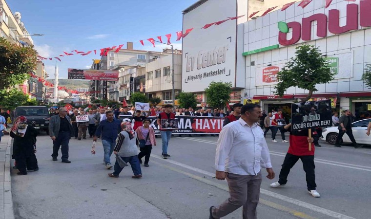 Bursa’nın Gemlik ilçesinde İsrail’in Filistin’e yönelik soykırımı telin edildi. Gemliklilerin yoğun katılım gösterdiği yürüyüş sonrası miting düzenlendi.