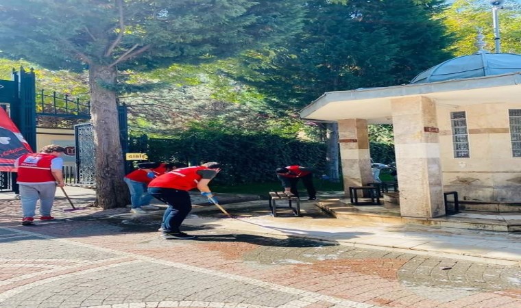 Şeyh Edebali Türbesi’ni ziyaret eden Bilecik Genç Kızılay gönüllüleri, şadırvan ve çeşme temizliği yaptılar.