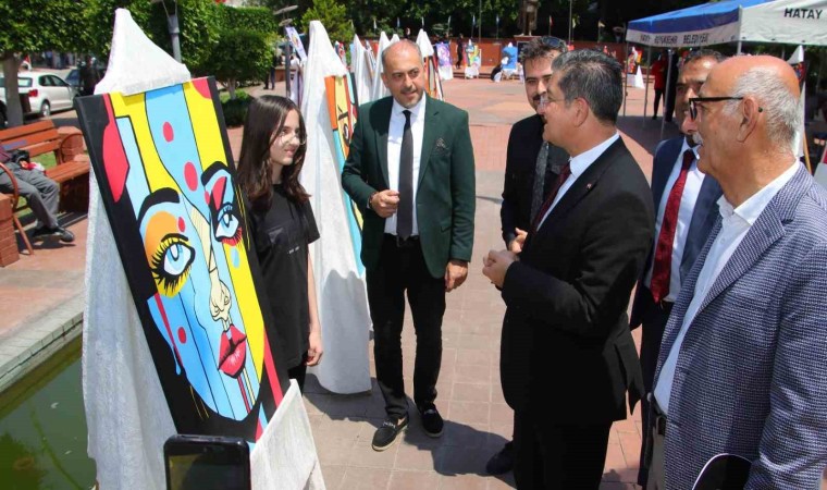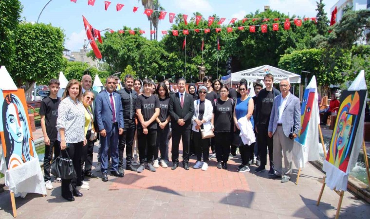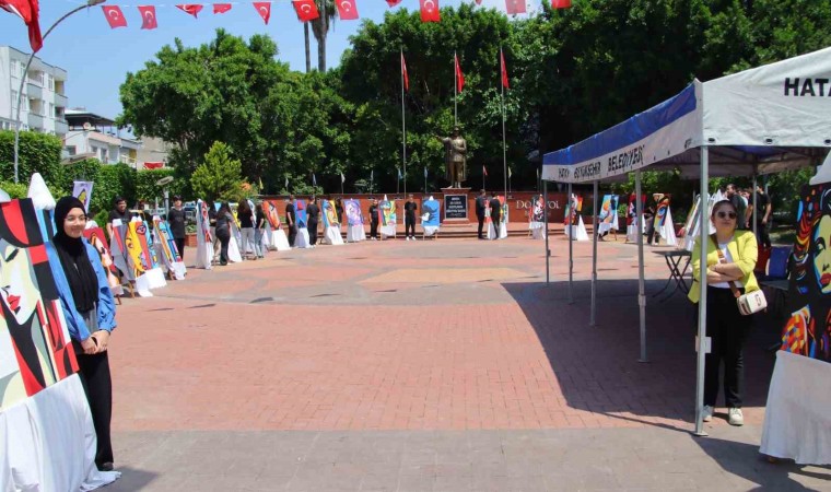 Hatay’ın Dörtyol ilçesinde, 19 Mayıs Atatürk’ü Anma Gençlik ve Spor Bayramı dolayısıyla Atatürk Anıtı alanında, özel bir lisede eğitim gören öğrenciler tarafından yapılan ‘Karma Resim Sergisi’ açıldı.