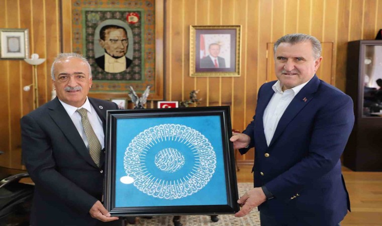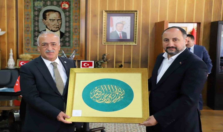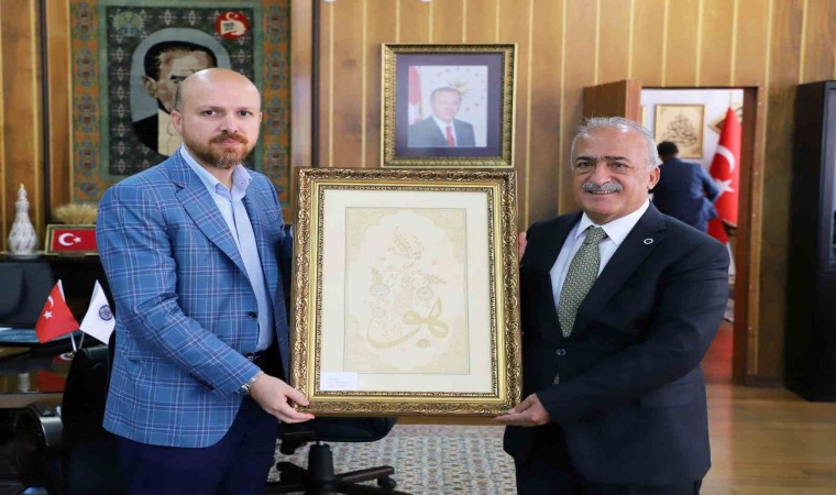 Programa katılmak üzere Erzurum’a gelen heyeti makamında ağırlayan Rektör Çomaklı, üniversitenin yapmış olduğu çalışmalar hakkında bilgi paylaşımında bulundu ve konuklarına üniversite öğrencilerinin yapmış olduğu tezhip çalışmalarından hediye etti.
