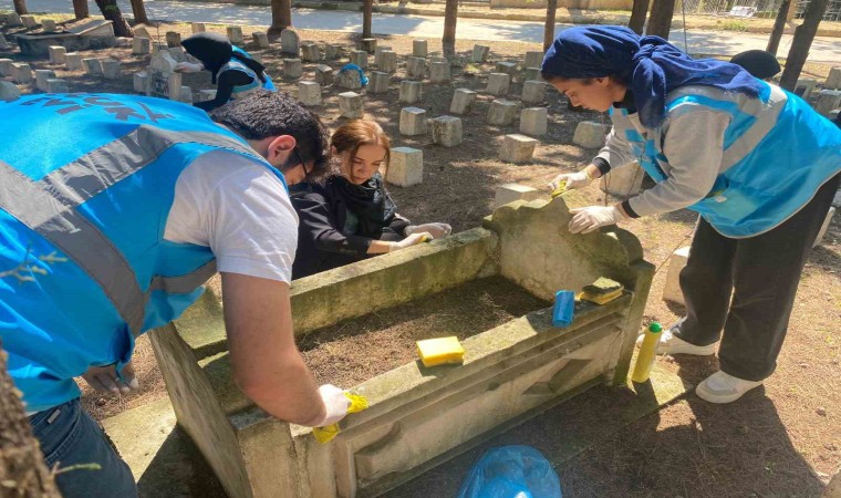 Çocuk mezarlığında bulunan 400’e yakın mezarda temizlik ve bakım çalışması yapan grup aynı zamanda ellerine aldıkları bezler ve deterjanlarla da mezar taşlarını tek tek silerek temizledi. Hummalı bir temizlik çalışmasının yapıldığı çocuk mezarlığının yanı sıra kimsesizler mezarlığında da aynı çalışmanın yapılacağı belirtildi.