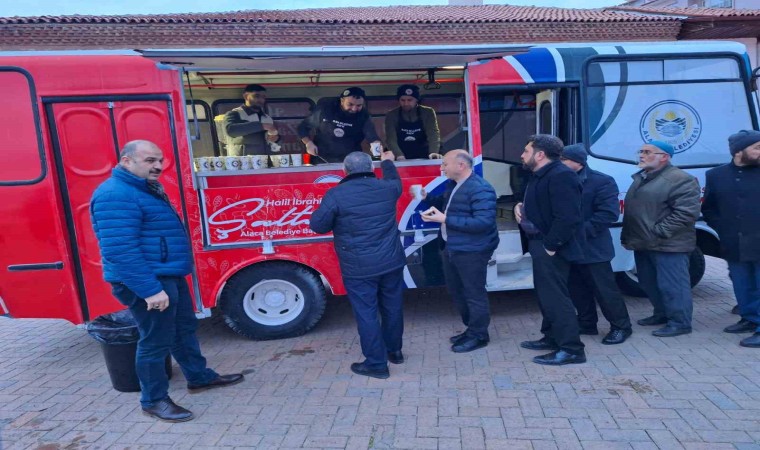 İlçe belediyesi tarafından cami çıkışında etkinliğe katılanlara mobil ikram aracı ile çorba ikramı yapıldı.