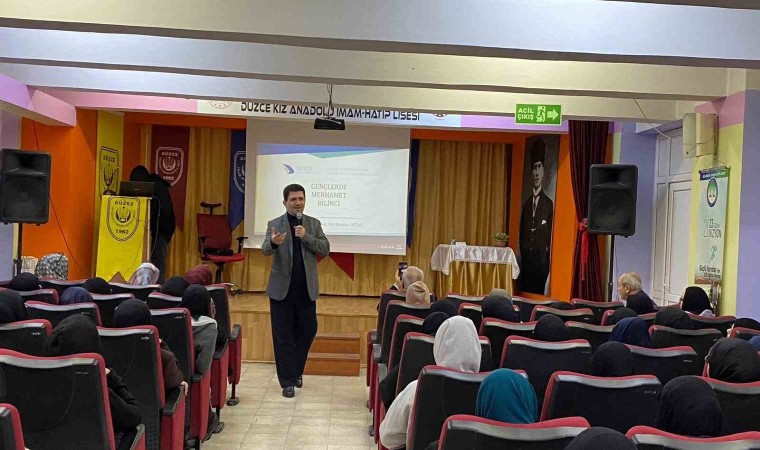 Düzce Üniversitesi Çocuk ve Gençlik Eğitimi Uygulama ve Araştırma Merkezi, Kız Anadolu İmam-Hatip Lisesi’nde "Gençlerde Merhamet Bilinci" adlı bir seminer gerçekleştirdi. Seminere yaklaşık 200 kişilik öğrenci grubu katıldı.