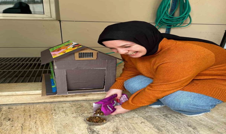 DÜZCE(İHA) – Gençlik ve Spor Bakanlığı Akçakoca yurdunda kalan gençler kendi elleriyle kedilere sıcak yuva yapıp onları beslediler.