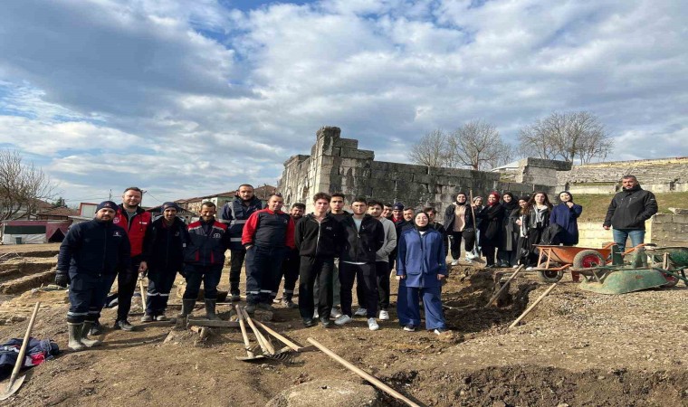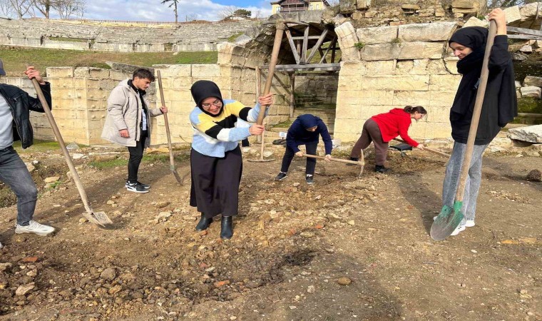 DÜZCE(İHA) – Gençlik ve Spor Bakanlığı Düzce yurtlarında kalan öğrenciler, Batı Karadeniz bölgesinin tek antik kenti Prusias Ad Hypium antik kentinde kazı çalışmalarına katıldılar.
