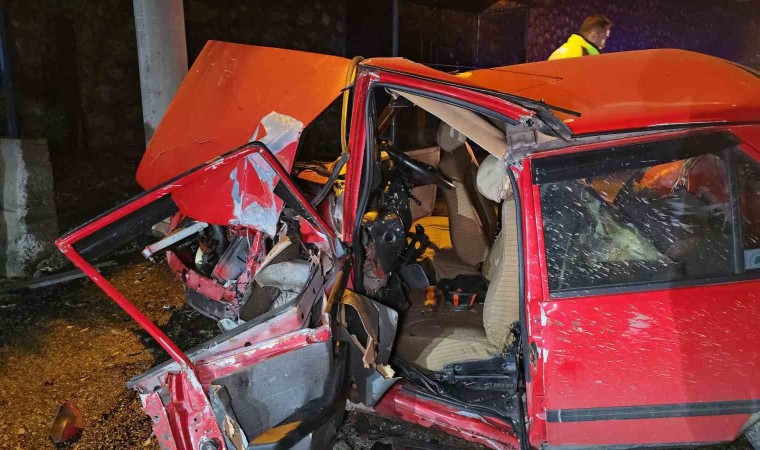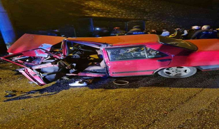 Karabük’te 17 yaşındaki ehliyetsiz sürücünün kullandığı Tofaş otomobil önce istinat duvarına ardından beton direğe çarptı. 2’si ağır 3 kişinin yaralandığı kaza anı güvenlik kamerasına yansıdı.