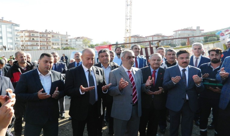 Temel betonu bırakılmazdan önce Bursa İl Müftüsü Yavuz Selim Karabayır’ın yaptığı dua sonrası tekbirlerle düğmeye basan protokol temele ilk harcı döktü.