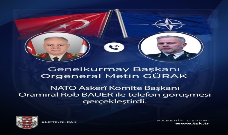 GENELKURMAY BAŞKANI ORGENERAL METİN GÜRAK, NATO ASKERÎ KOMİTE BAŞKANI ORAMİRAL ROB BAUER İLE TELEFON GÖRÜŞMESİ GERÇEKLEŞTİRDİ.