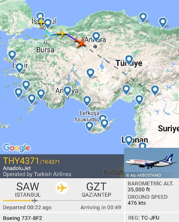 Enver ALAS / İSTANBUL, DHA- GAZİANTEP hava sahasında tanımlanamayan bir cisim görülmesinin rapor edilmesi üzerine Gaziantep Havalimanı'nda gece yarısından itibaren durdurulan uçuşlar, yaklaşık 12 saat sonra normale döndü. Gaziantep seferini yapan iki uçak 13.15 sıralarında İstanbul'dan havalandı.