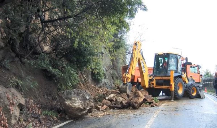Yeni Mahalle Karakütük Caddesi'nde saat 09.00 sıralarında, günlerdir etkili olan yağış nedeniyle yumuşayan topraktan kopan kaya parçaları yola düştü. O sırada yoldan geçen kimsenin olmaması olası faciayı önledi.