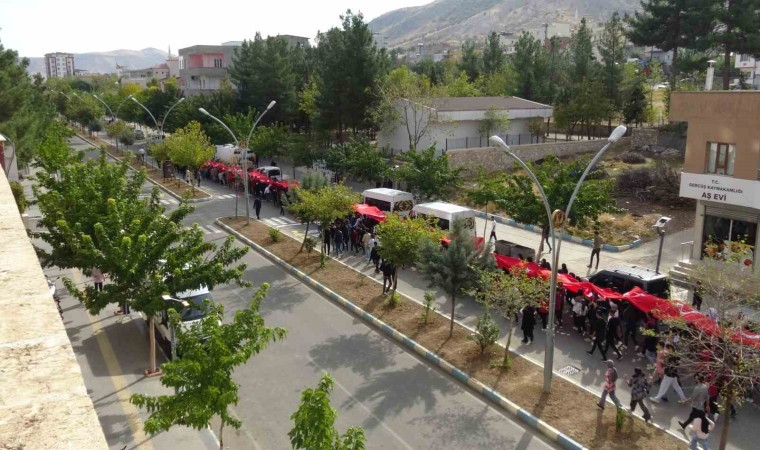 Gercüş Kaymakamlığı ve İlçe Milli Eğitim Müdürlüğü tarafından düzenlenen bayrak yürüyüşü Şehit Mehmet Ali Atılgan köprülü kavşağından başladı. Kalabalık 100 metrelik Türk bayrağını ilçe meydanına kadar omuzlarında taşıdı. Bayrak yürüyüşü etkinliğine Gercüş Kaymakamı Muhammed Öztaş, kurum amirleri, vatandaşlar ve çok sayıda öğrenci katıldı. Şehit Mehmet Ali Atılgan köprülü kavşağından başlayan yürüyüş ilçe halk kütüphanesi önünde son buldu.