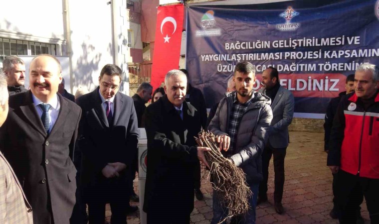 Batman’ın Gercüş ilçesinde bağcılığı geliştirmek ve kırsal kalkınma amacı ile çiftçilere, yüzde 70 devlet destekli "Mezrone" üzümü çeşidine ait aşılı Amerikan asma ağacı olan 5 bin 250 adet fide dağıtıldı.