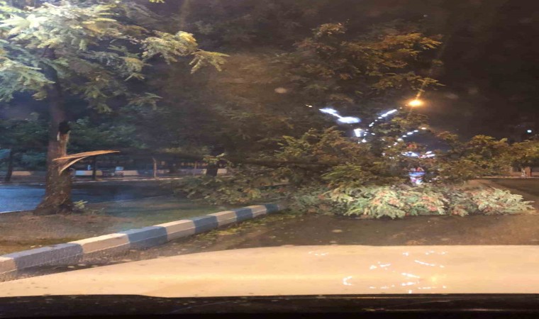 Batman’ın Gercüş ilçesinde etkili olan sağanak yağış ve fırtına ağaçları devirdi.