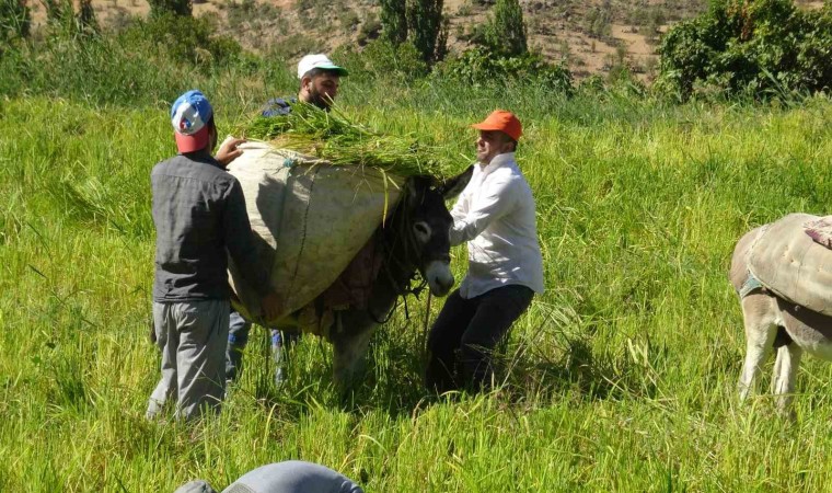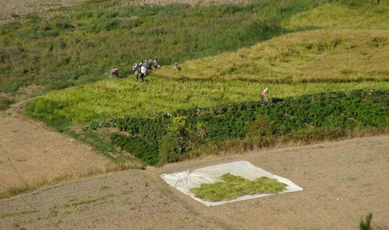 İlçeye bağlı Gönüllü köyünde arazilerin engebeli oluşundan dolayı Anadolu’da ilk uygarlıklardan beri kullanılan ilk tarım aletlerinden olan orak ile günün ilk ışıklarında tarlalarına gelen köyün sakinleri aksam gün batımına kadar tarlada mesai yapıyor.