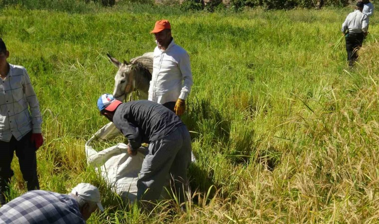 İsmail Kavak ise, oraklarla pirinç hasadı yaptıklarını ifade ederek, "Burada oraklarla biçip boş ve düz bir araziye at ve eşeklerle biçtiğimiz pirinci seriyoruz. Daha sonra traktörle üstünden geçiyoruz. Bu işlemlerin ardından ayıklayıp kurumaya bırakıyoruz. Bir hafta kuruduktan sonra değirmene götürüyoruz. Oraklarla biçmek zor iş. Köylüler birbirine yardım ettikleri için bizim için kolay oluyor" şeklinde konuştu.