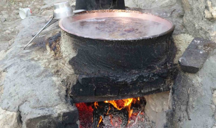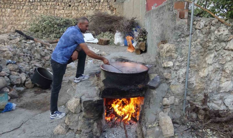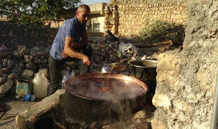 Batman’ın Gercüş ilçesinde ’mezrone’ üzümünün yetiştiği şifa kaynağı organik pekmez yapımı başladı.