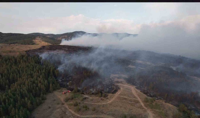 Ankara’nın Kızılcahamam ilçesinde başlayan ve Bolu’nun Gerede ilçesine sıçrayan yangında onlarca dönüm zarar gördü. Yanan alanlar, dron ile havadan görüntülendi.