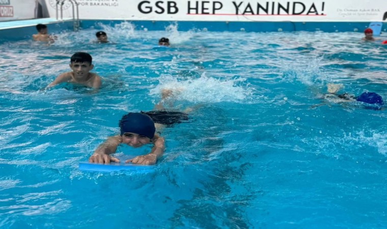 Adıyaman’ın Gerger ilçesindeki çocuklar, açılan kurslarda yüzmeyi öğreniyor.